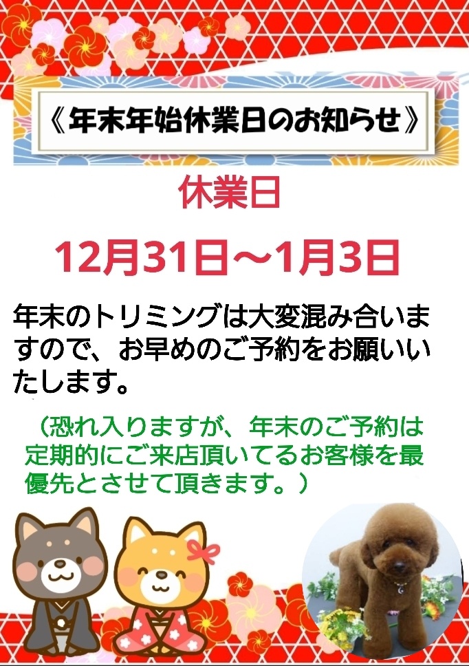 誠に勝手ながら、(11月2日・3日を除く)10月28日~11月6日は、トリミング業務をお休みさせて頂きます。